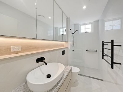 * main bathroom with ample storage