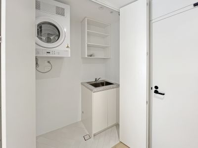 * discreet laundry including dryer and storage