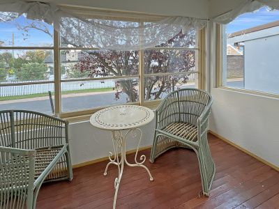large eat-in kitchen with adjoining sunroom and enclosed verandah