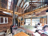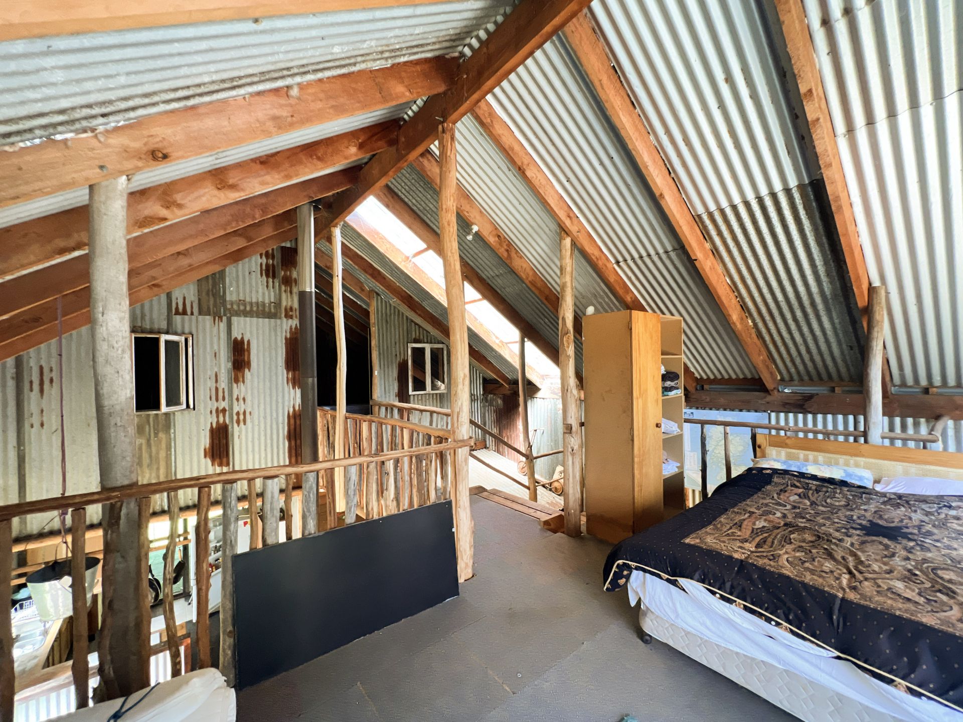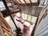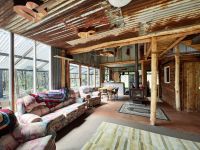 Full of rustic charm with its roughly sawn timber, soaring ceiling heights and central wood fire.